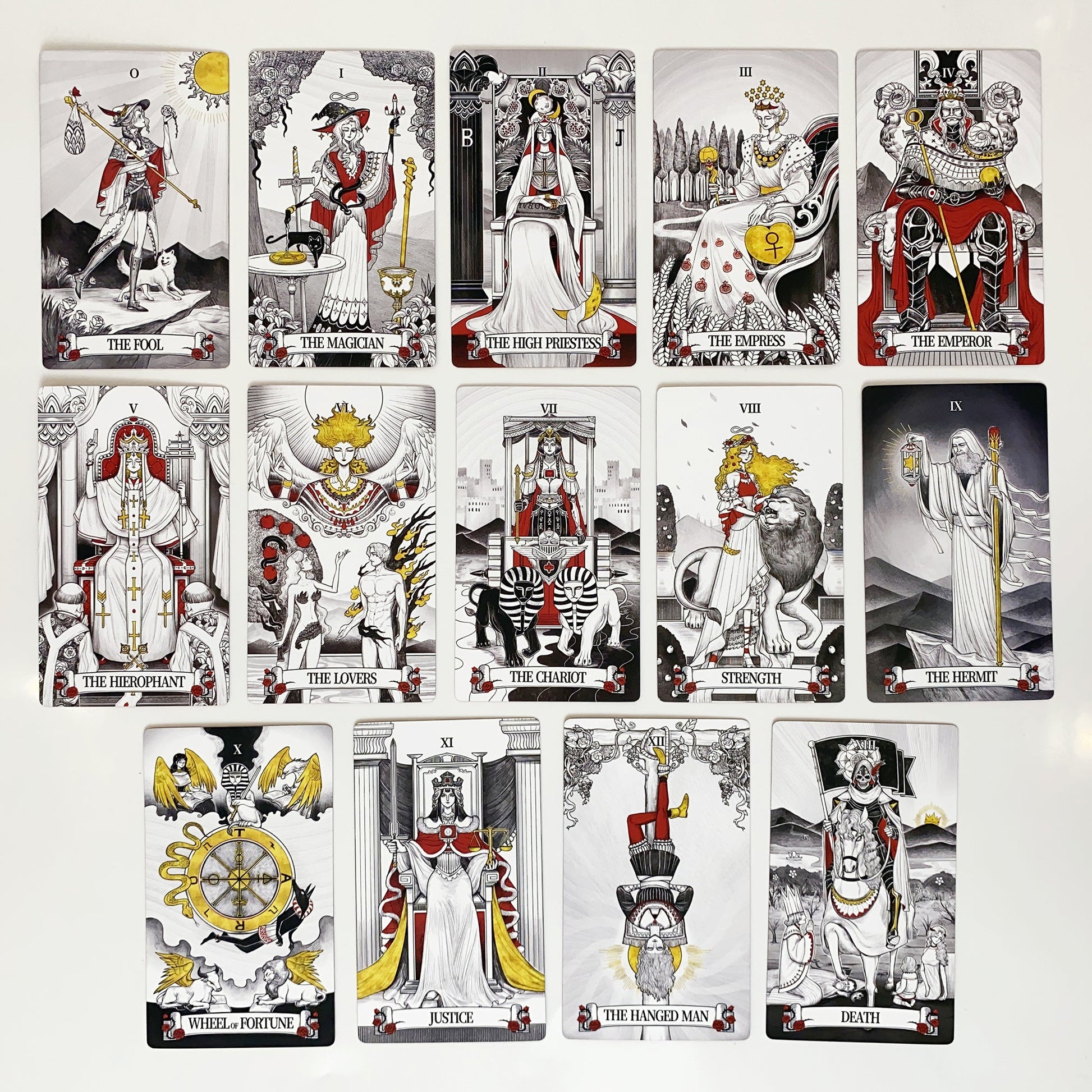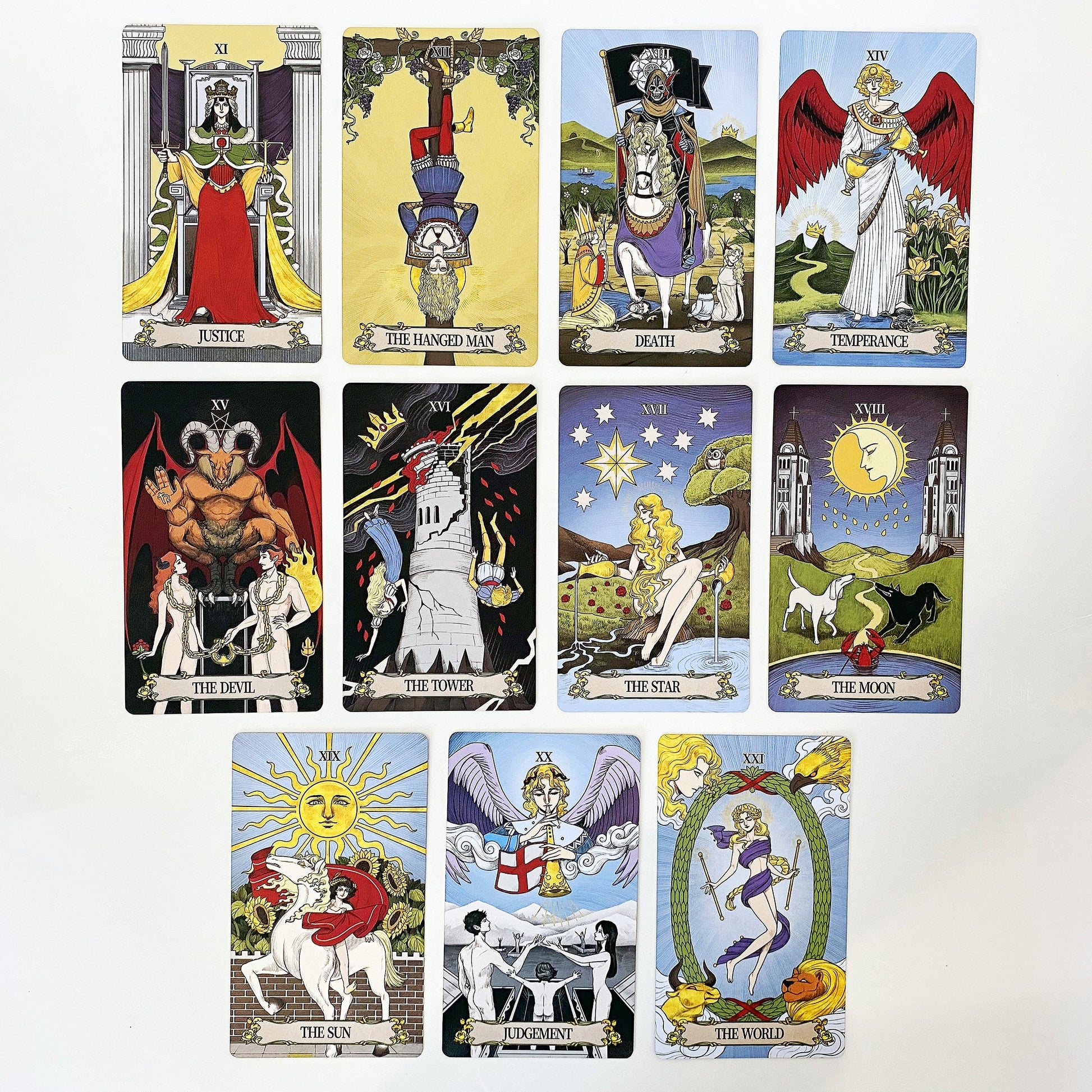 INCLUDES | 22 Major Arcana + 56 Minor Arcana + guidebook | 22 Major Arcana + 56 Minor Arcana + 2 bonus cards + guidebook |