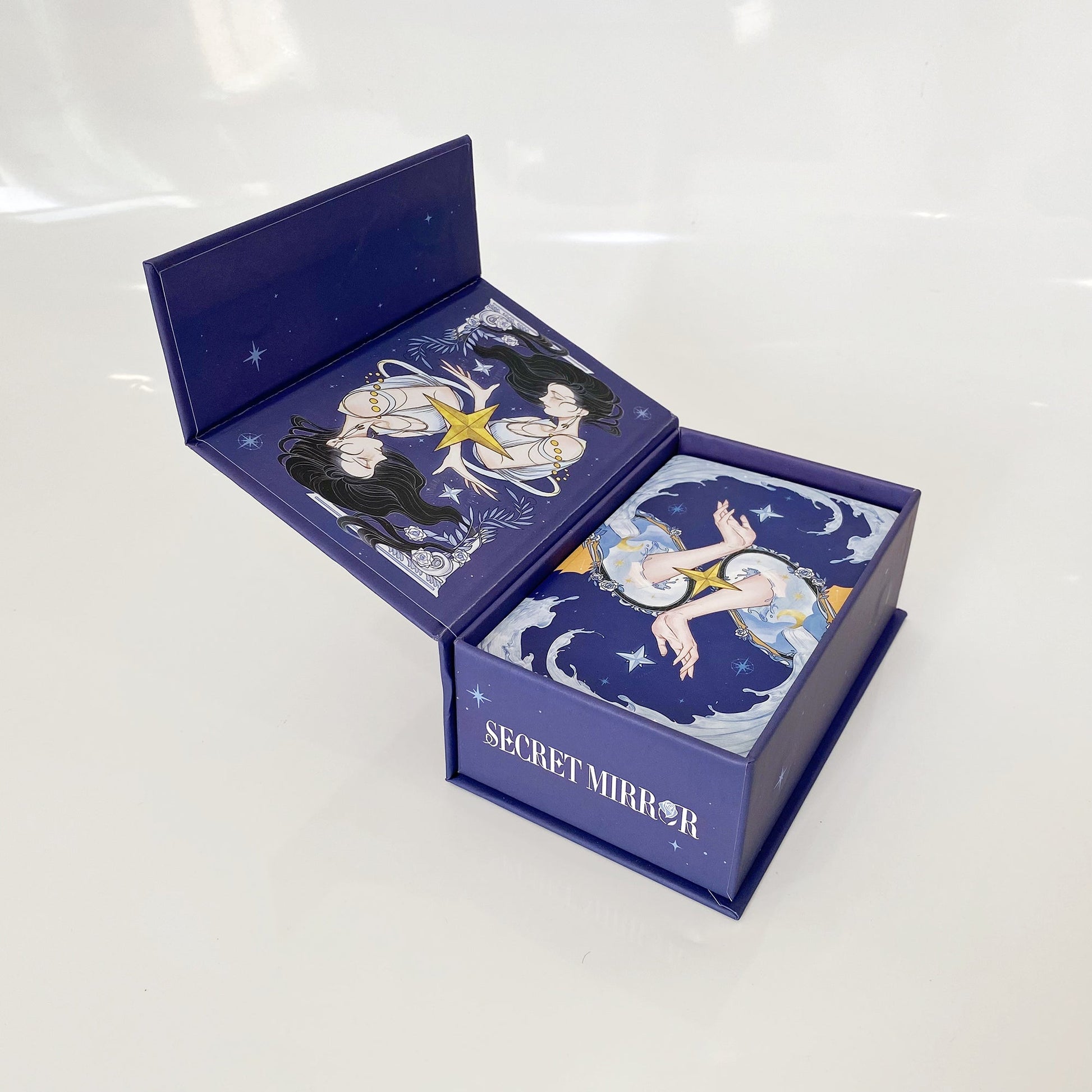 PACKAGING | book-style rigid box, velvet lamination | two-piece rigid box, velvet lamination |