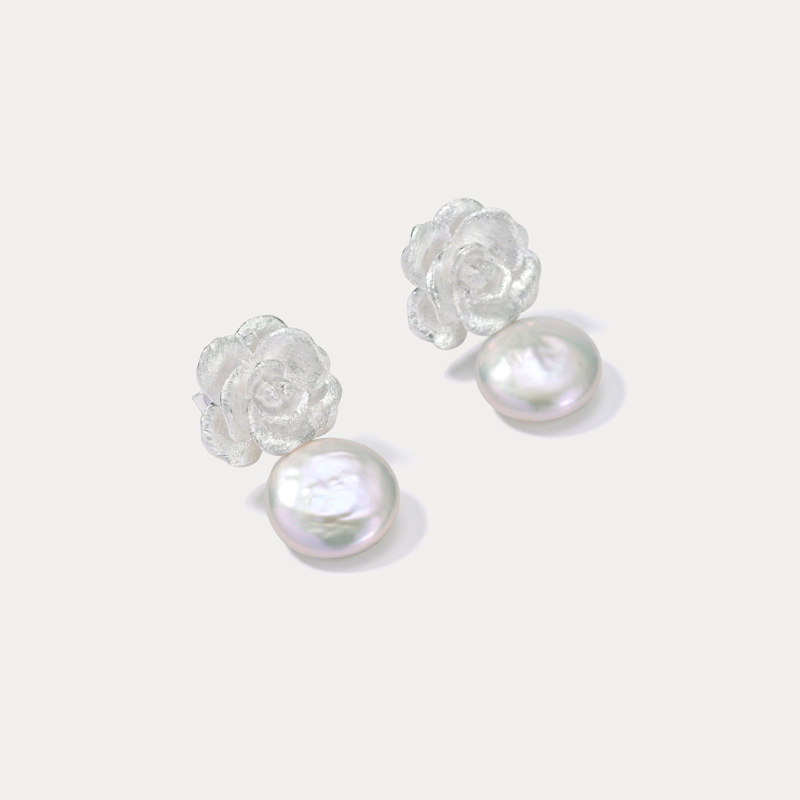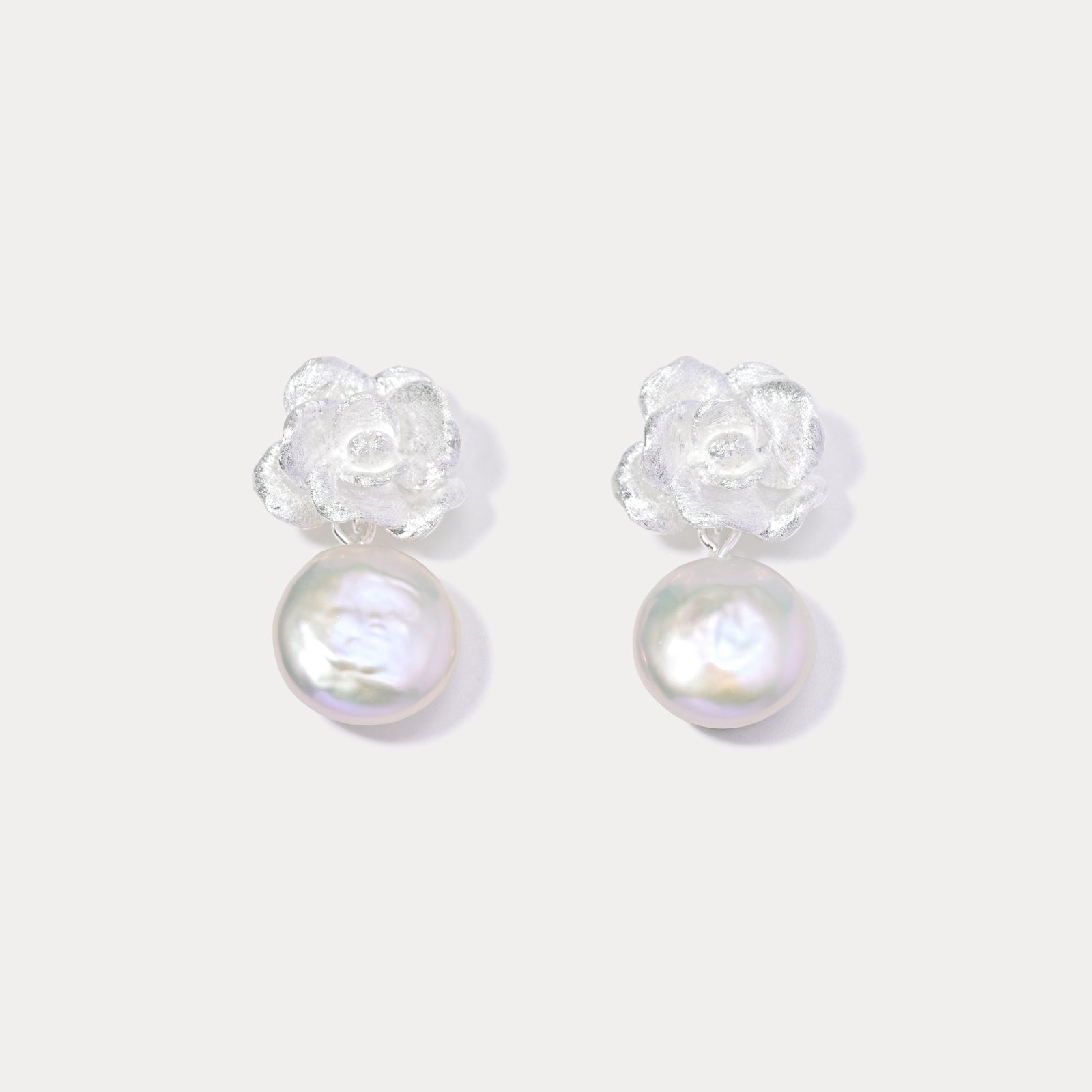 Silver Camellia Earrings