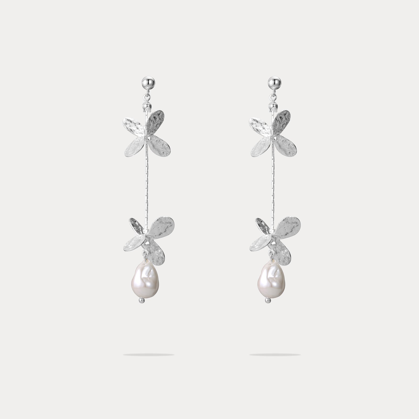 Be captivated by the unique charm of our Silver Dangle Pearl Earrings. Featuring silver petal accents paired with pearls, these earrings blend clean lines with a touch of poetic movement, adding a soft, artistic vibe to your look. For daily commutes, an afternoon coffee date, an art exhibition, or a vintage-inspired gathering, these Silver Earrings offer the perfect finishing touch. Slip on these Pearl Earrings to enhance a fresh and refined style with a hint of creativity. With every appearance, your effortlessly distinctive taste comes through with quiet elegance.