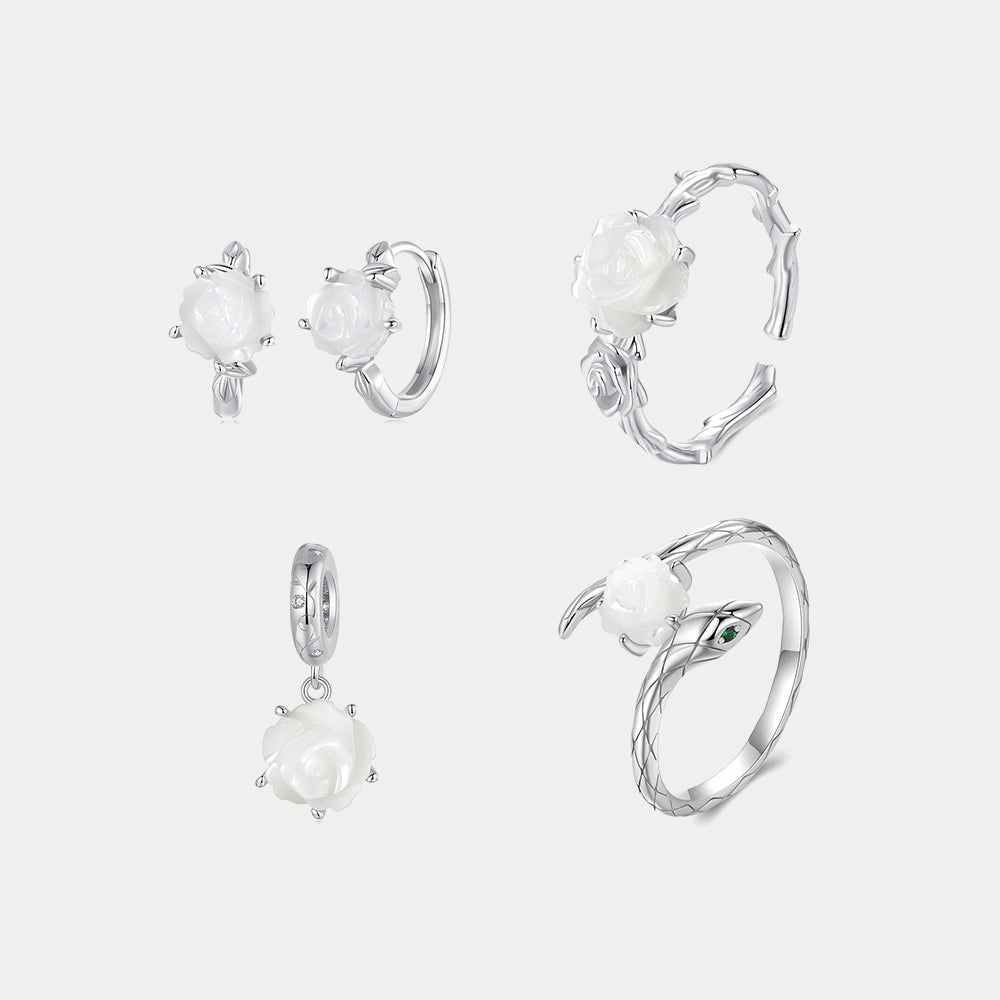 A delicate white rose blooms at your neckline, as if a quiet winter garden decided to blossom just for you. The sterling silver petals shine with a soft, graceful glow, creating an elegant contrast with the gentle white center. It’s a romantic little piece with a calm, timeless beauty. Wear it on a peaceful day out, a dreamy date, or gift it to someone who deserves a flower that never fades.