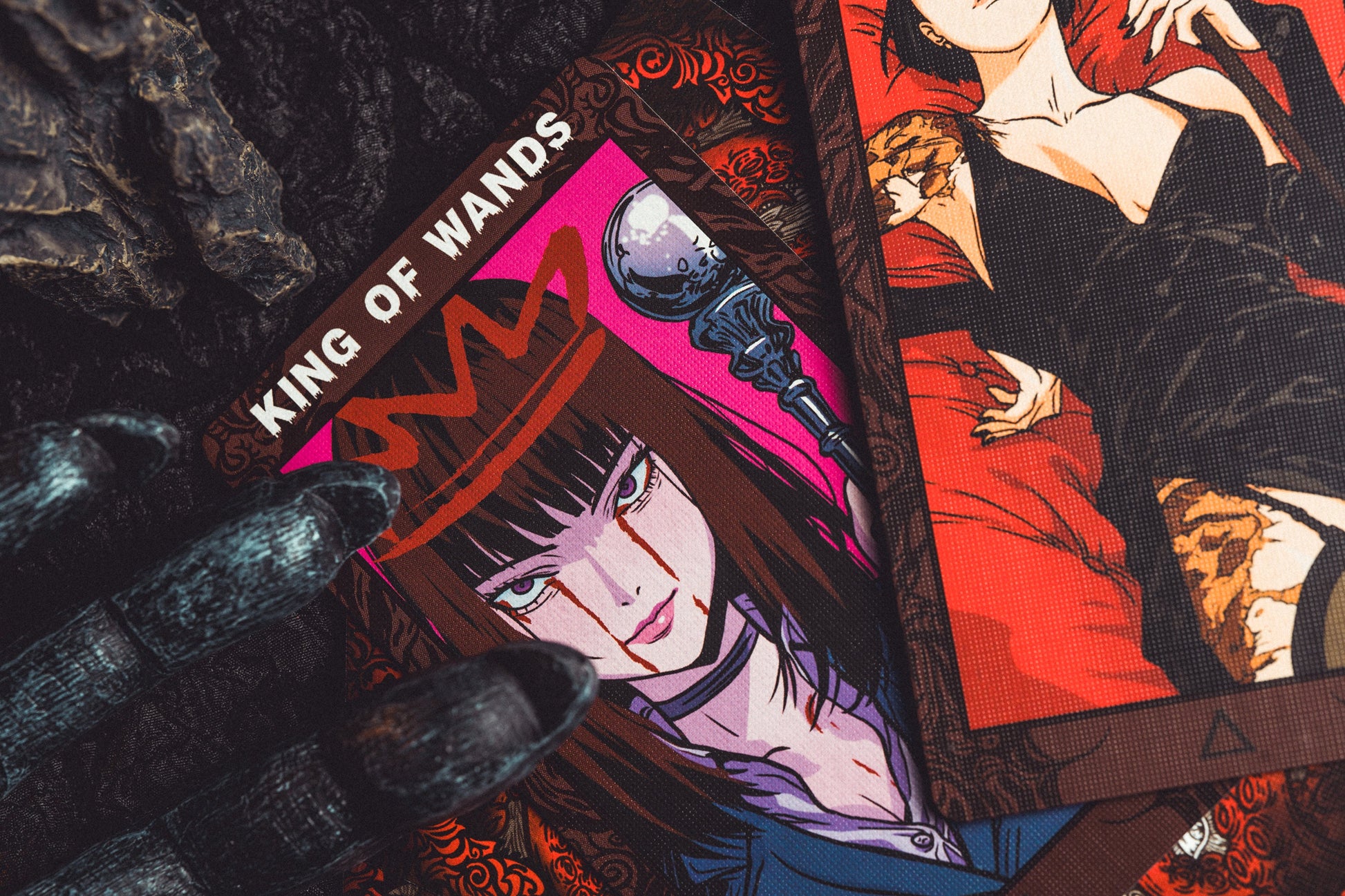 Salute to every fervent spirit! This deck draws you into a fanatical world of wonder and grotesquery. A craving soul, driven by an irresistible urge to break free from its stifling shell, takes on myriad incarnations to confuse dream with reality. With a striking palette, the artwork blends comic art with 82 spine-tingling reveries to impart an unsettling feeling. Each scene is a statement unto itself. Each card feels like a bottomless whirlpool, echoing a series of bizarre yet captivating tales...