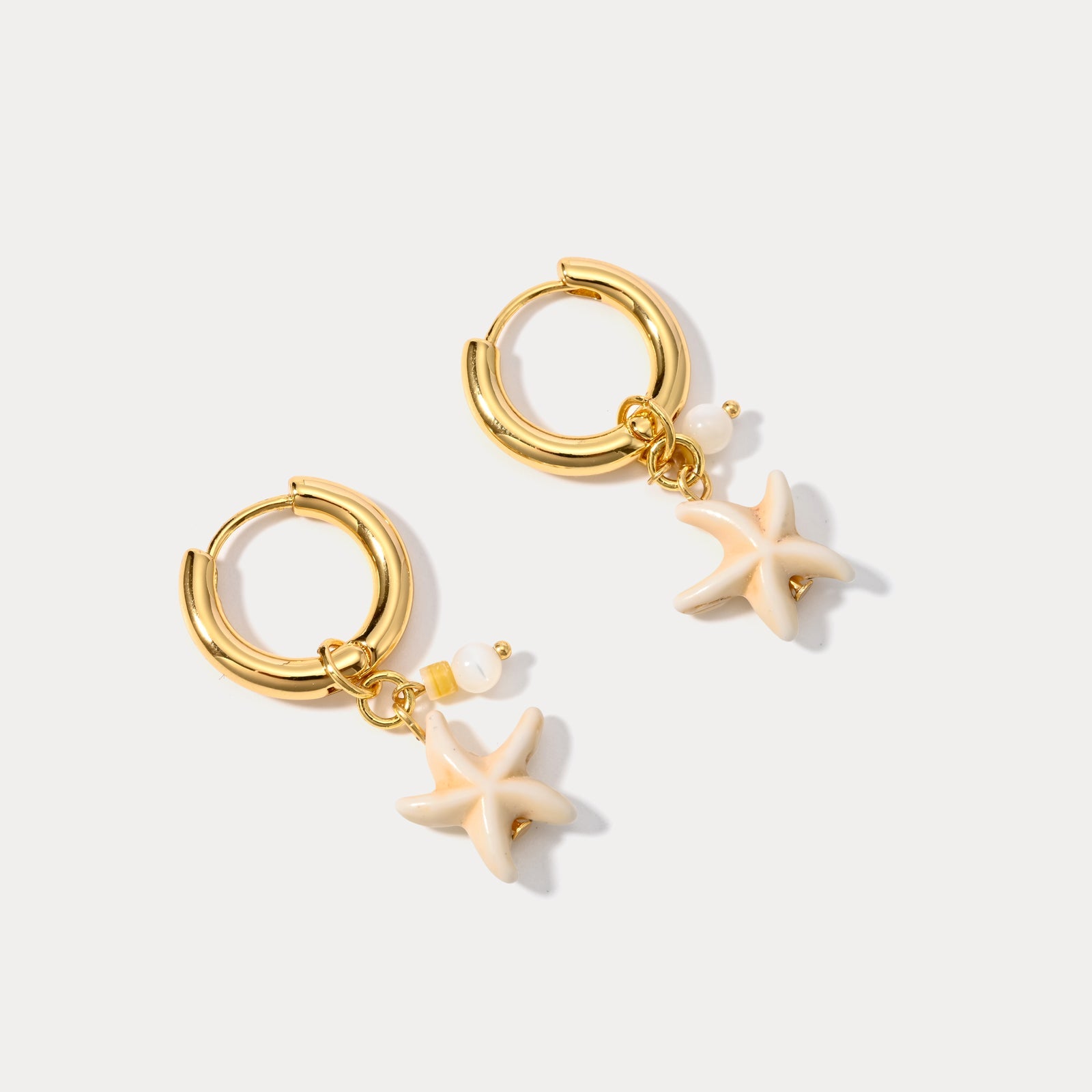 Exude the carefree spirit of coastal living with the Starfish Boho Earrings, a delightful pair of starfish earrings that capture the essence of bohemian charm. Meticulously handcrafted with 18K gold-plated brass accents, these enchanting boho hoop earrings feature whimsical starfish motifs adorned with shimmering seashells, evoking the sun-kissed allure of endless summer days. A playful fusion of natural elements and artisanal craftsmanship, these hoop huggie earrings add a touch of effortless sophistication to any ensemble, inviting you to embrace the wanderlust within and embark on a journey of self-discovery. Whether complementing a breezy sundress or elevating a casual everyday look, these boho earrings capture the free-spirited allure of coastal living, inspiring you to embrace life's simple pleasures with bohemian flair.