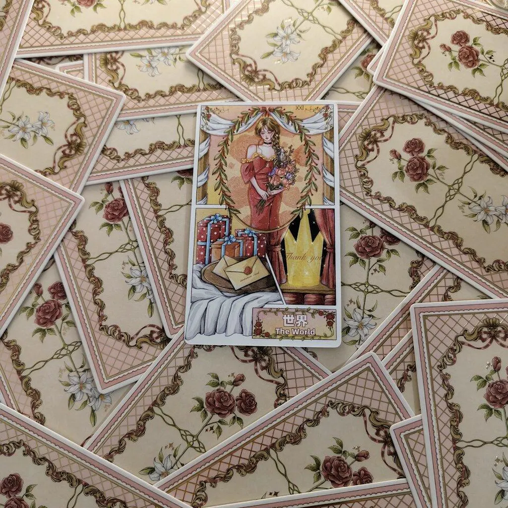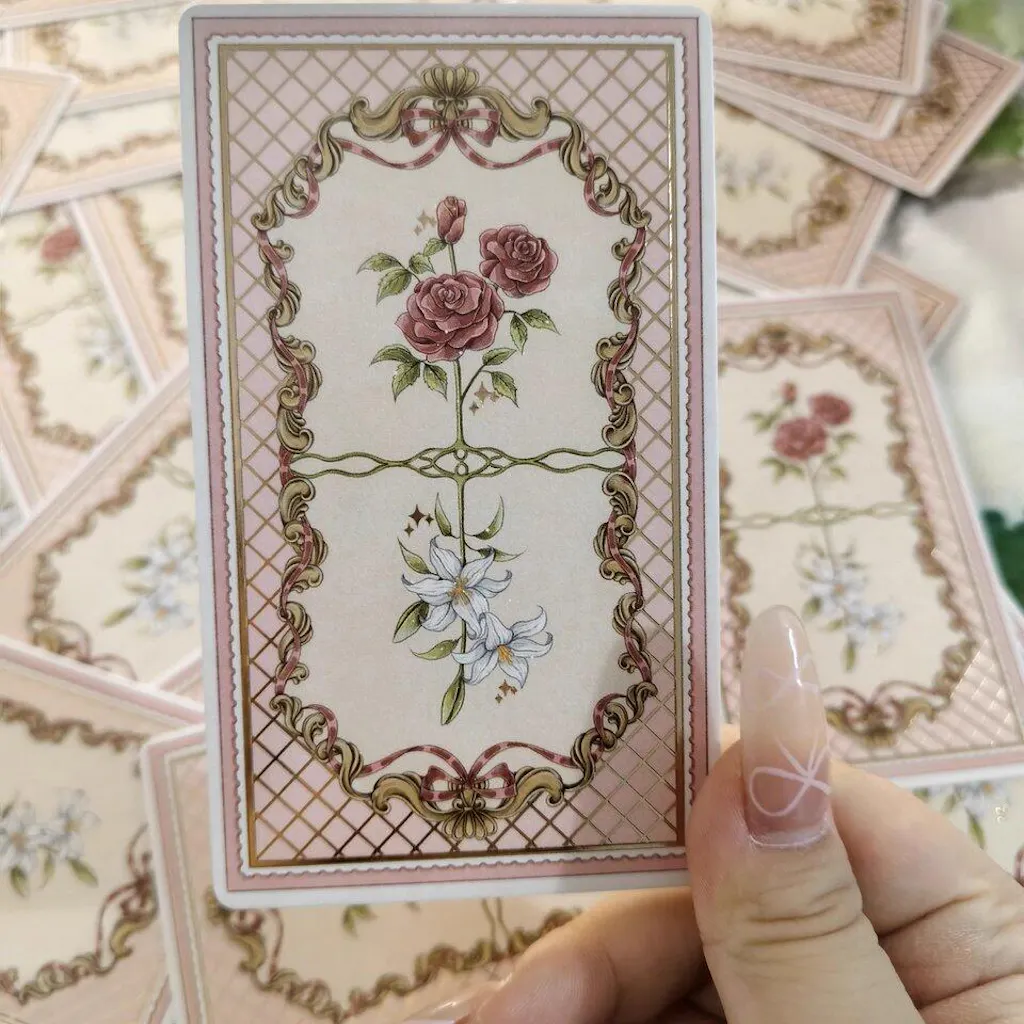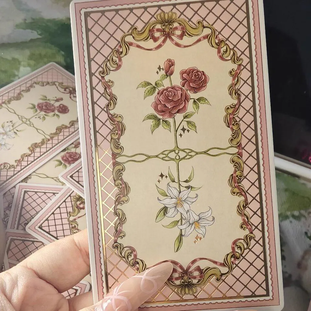 Ideal for intuitive readings or as a collector's piece, this deck balances narrative depth with visual charm. Its unique canvas division design – with each card divided into panels, like frames in a storybook – brings each illustration to life. Its soft, dreamy palette evokes whimsy and serenity, while the artwork, delicate yet vibrant, celebrates feminine elegance.