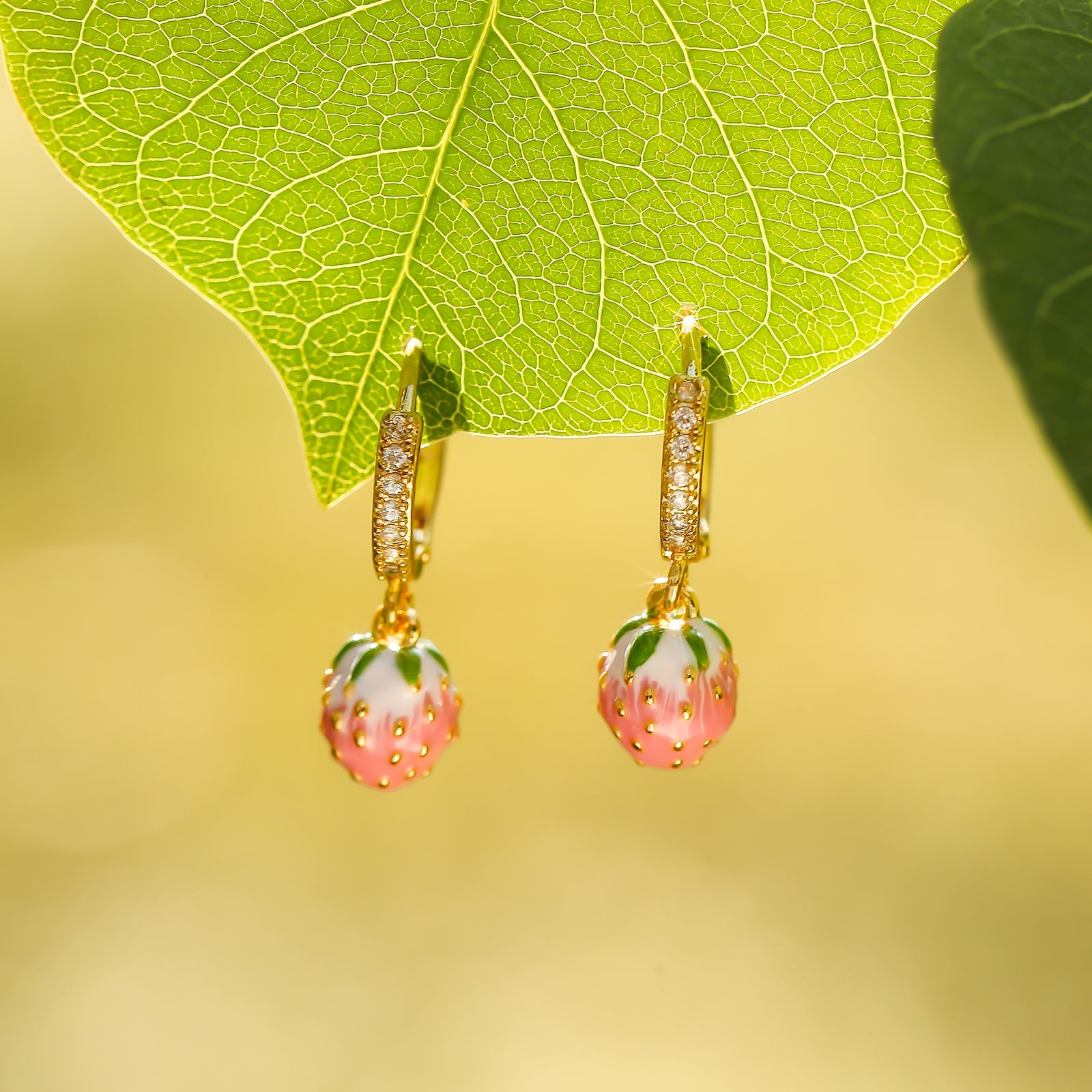 These Strawberry Drop Earrings bring a touch of summertime sweetness with their bright, glossy berry design that catches the light with every move. A charming piece of berry jewelry inspired by nature, they add a playful sparkle to casual outfits and dressy moments alike. A lovely choice when you want a small, cheerful gift for her that feels fresh and full of fun.