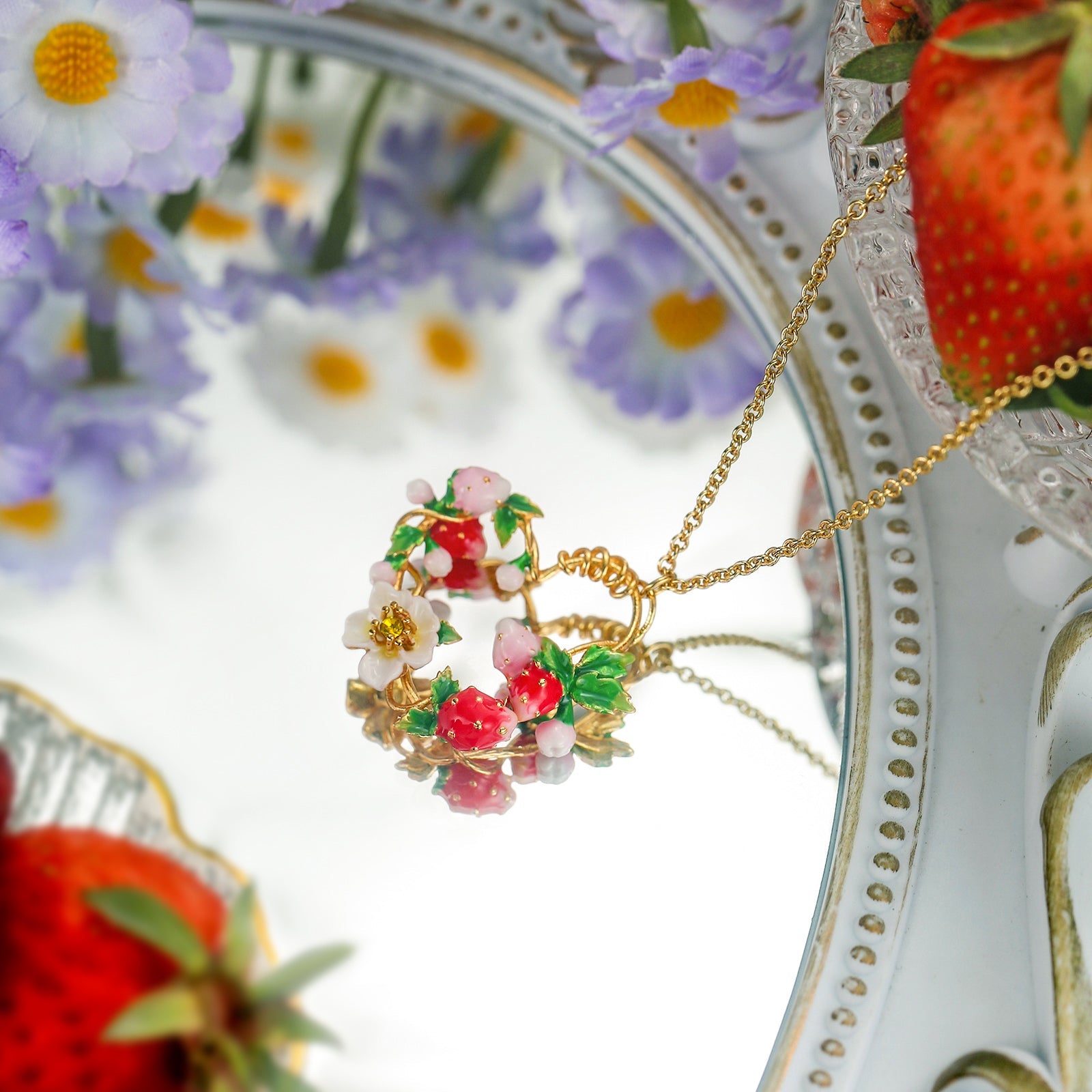 Strawberry Enamel Heart Necklace