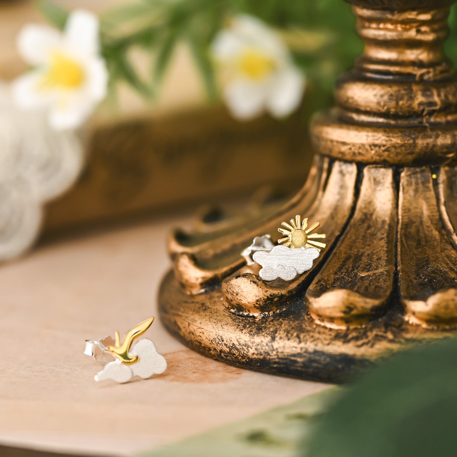 Experience the beauty of a new day with our Sunrise Earrings! Adorned with graceful clouds, a shining sun, and a flying bird, these earrings capture the essence of a peaceful morning. Start your day with a touch of nature and add a touch of serenity to your style!