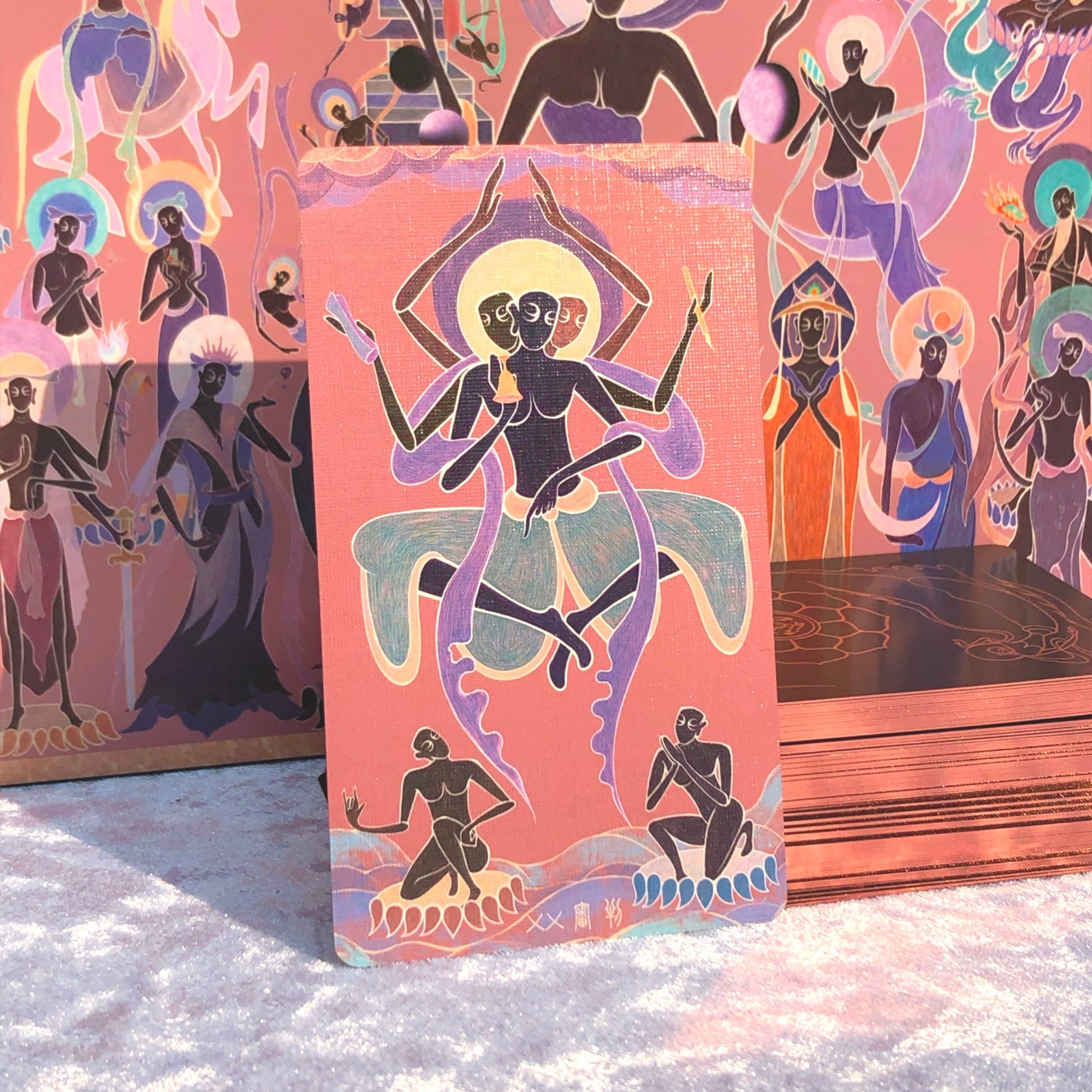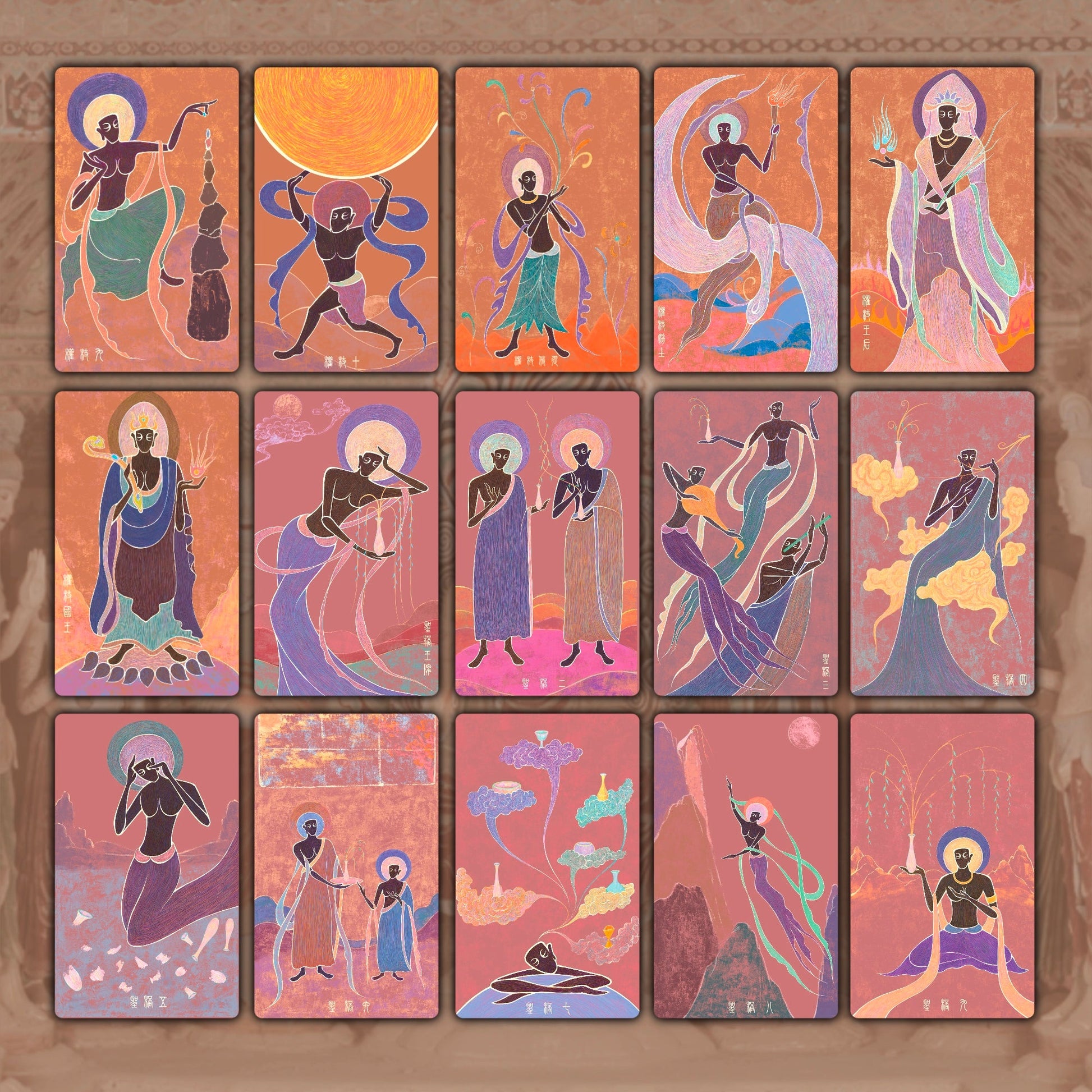 Merging the sublime beauty of Dunhuang murals with the mystique of tarot, this deck bridges cultures to offer a meditative journey of transformation. Its artwork radiates a serene, otherworldly elegance. Inspired by the celestial figures and hues of traditional Chinese mural art, the cards are reimagined to embody the spiritual richness of Silk Road culture. Whether used for introspection or as a stunning art collection, this deck invites you to experience destiny through the lens of transcendent artistry.