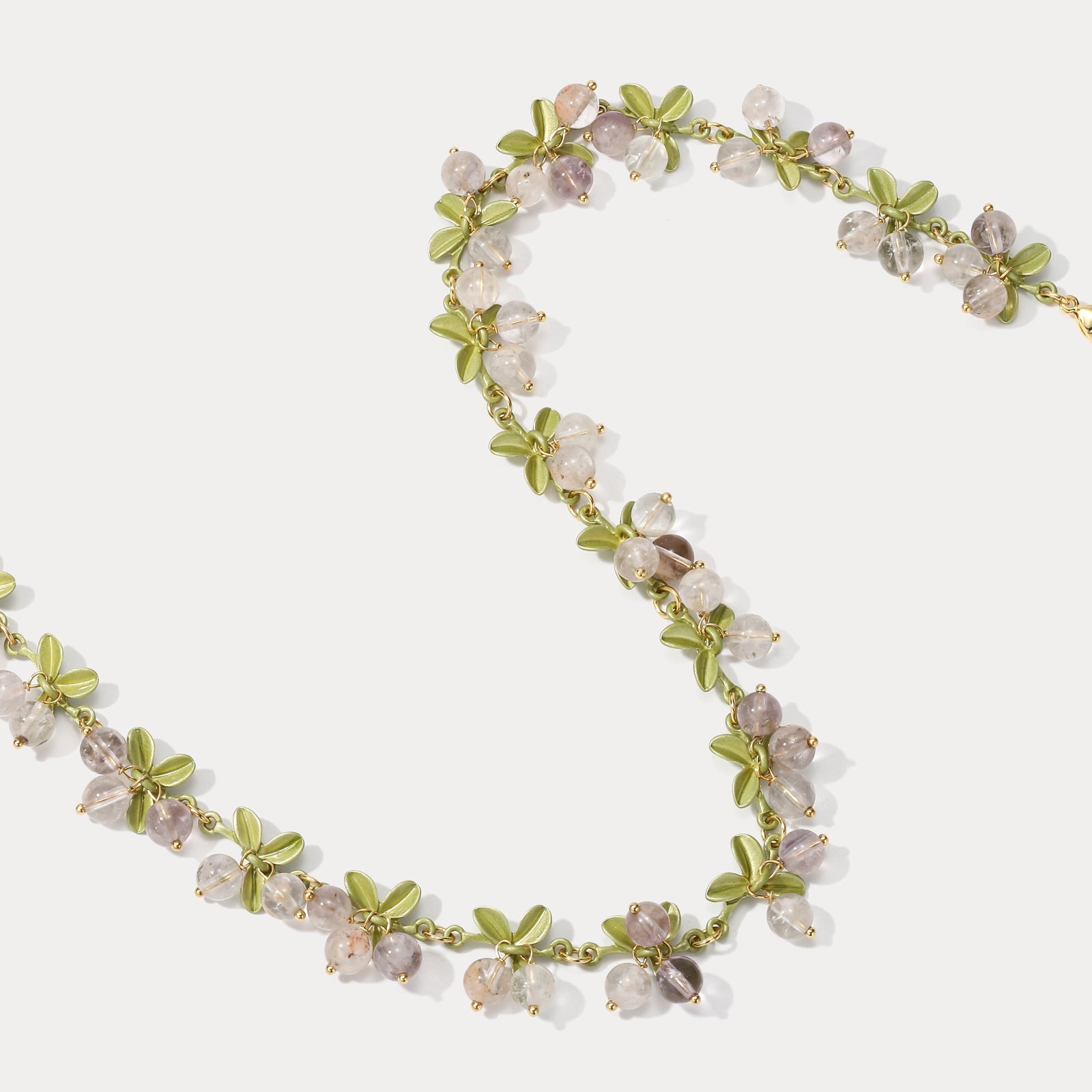 Immerse yourself in the captivating allure of nature with the Transparency Berry Necklace, a stunning piece of berry jewelry that celebrates the beauty of the earth's bounty. Crafted with 18K gold-plated brass and an array of exquisite natural stones, this stone necklace features a mesmerizing blend of hues and shapes that mimic the vibrant colors and delicate forms of ripe, translucent berries. Each bead radiates warmth and elegance, creating a nature-inspired necklace that effortlessly complements any ensemble. Whether worn as a statement piece or layered with other jewelry, this necklace is a cherished tribute to the wonders found in nature's treasures.