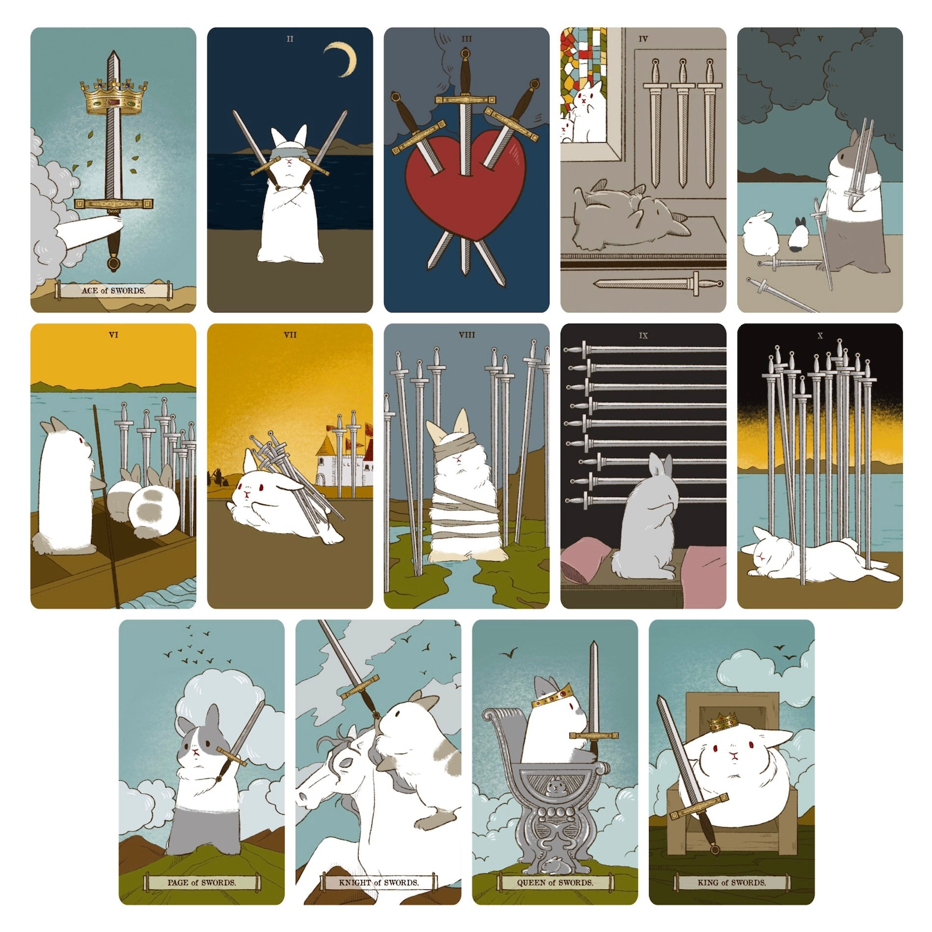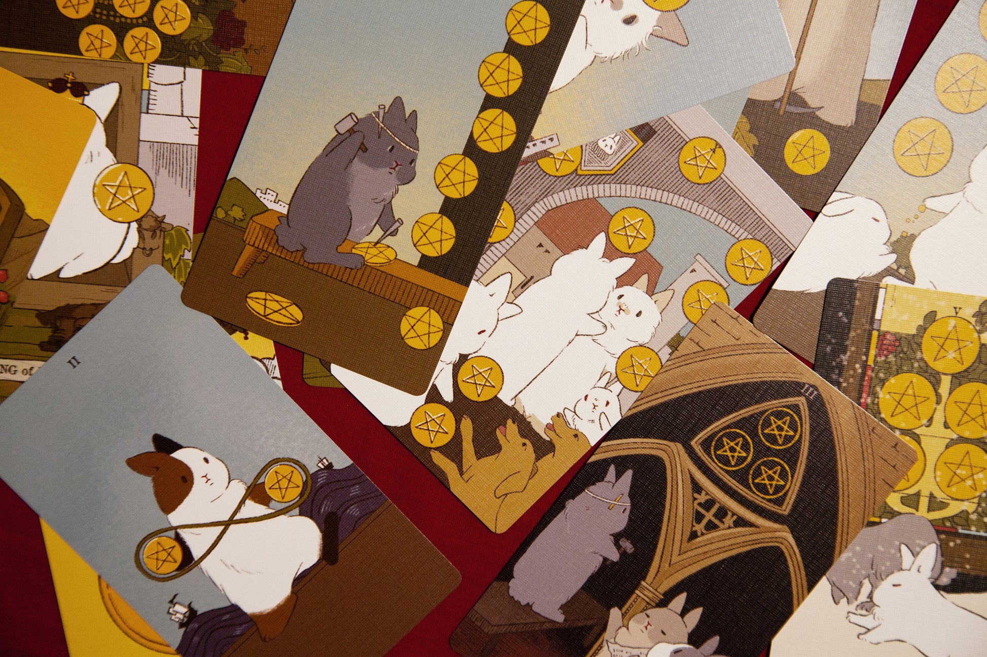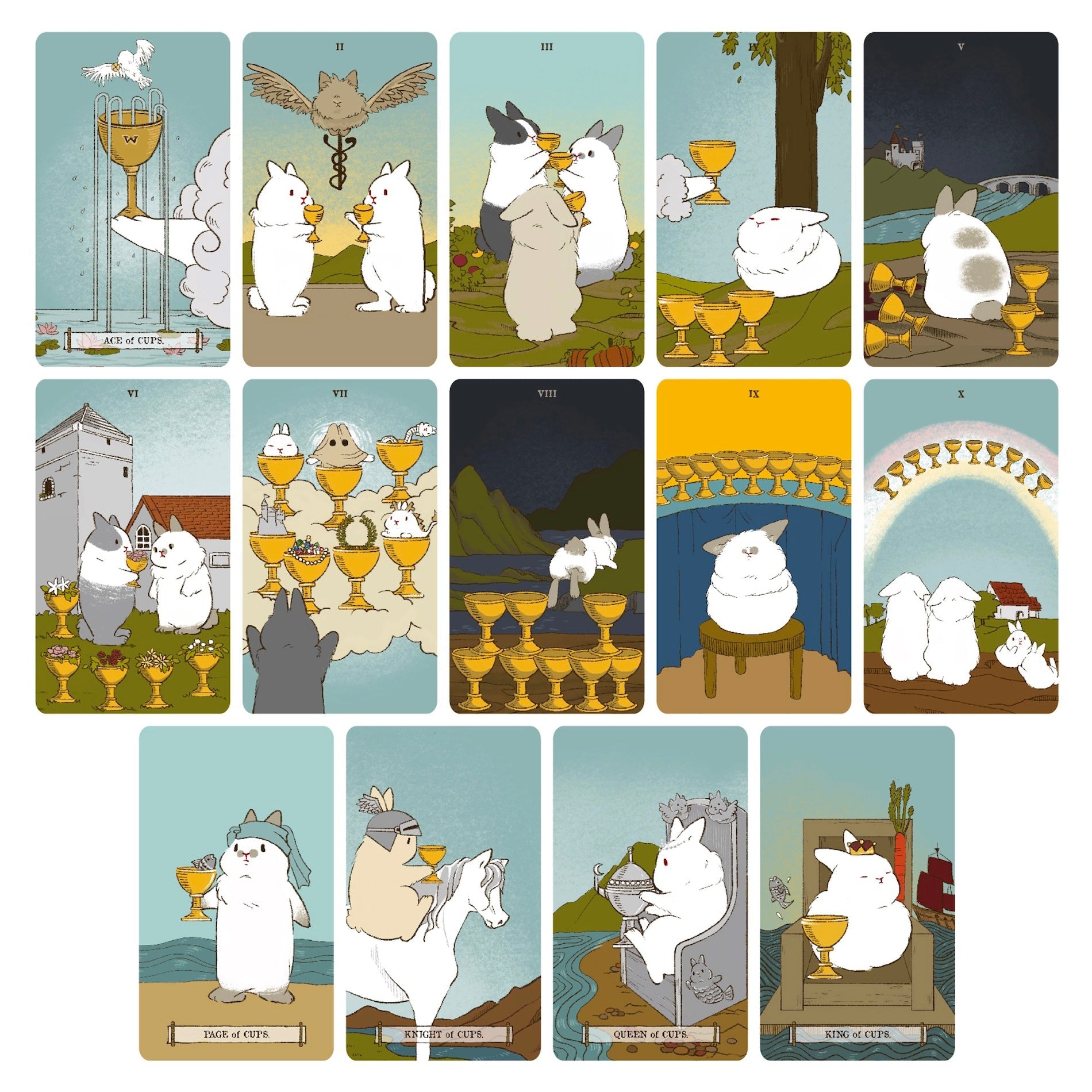 This beginner- and children-friendly deck includes 78 adorable hand-drawn cards, each bringing to life Sandy's beloved pet, who will serve as your divine guide. It's illustrated with a simple yet delicate brushwork that refreshes the heart and gentle, warm hues that soothe the mind. Find solace in the bunny's quiet companion and immerse yourself in a fairytale!